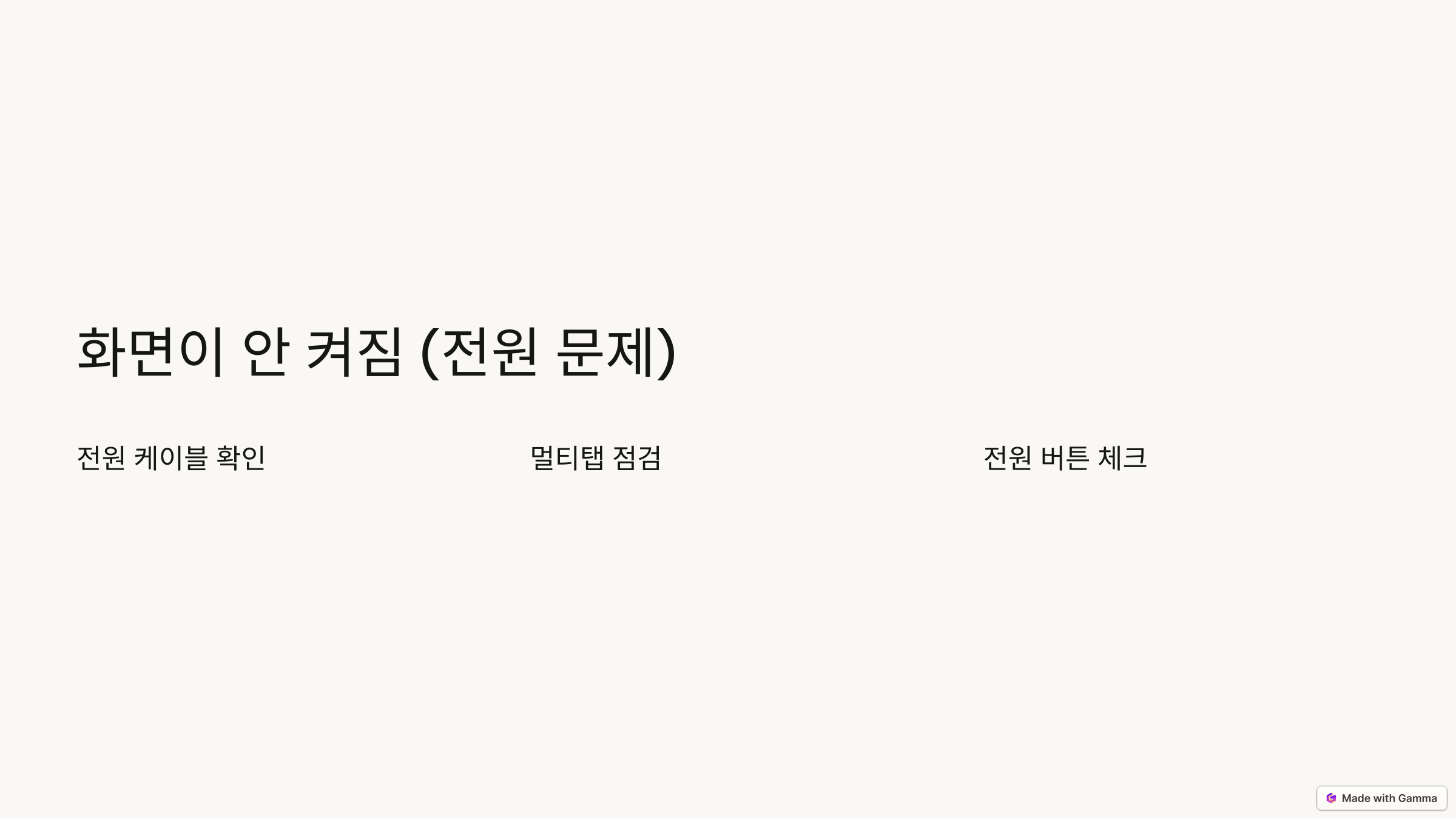 이와 더불어 다른 전원 케이블이나 다른 콘센트를 사용해보는 것도 좋은 방법입니다. 이렇게 여러 가지 점검을 통해 전원 문제를 해결할 수 있습니다.