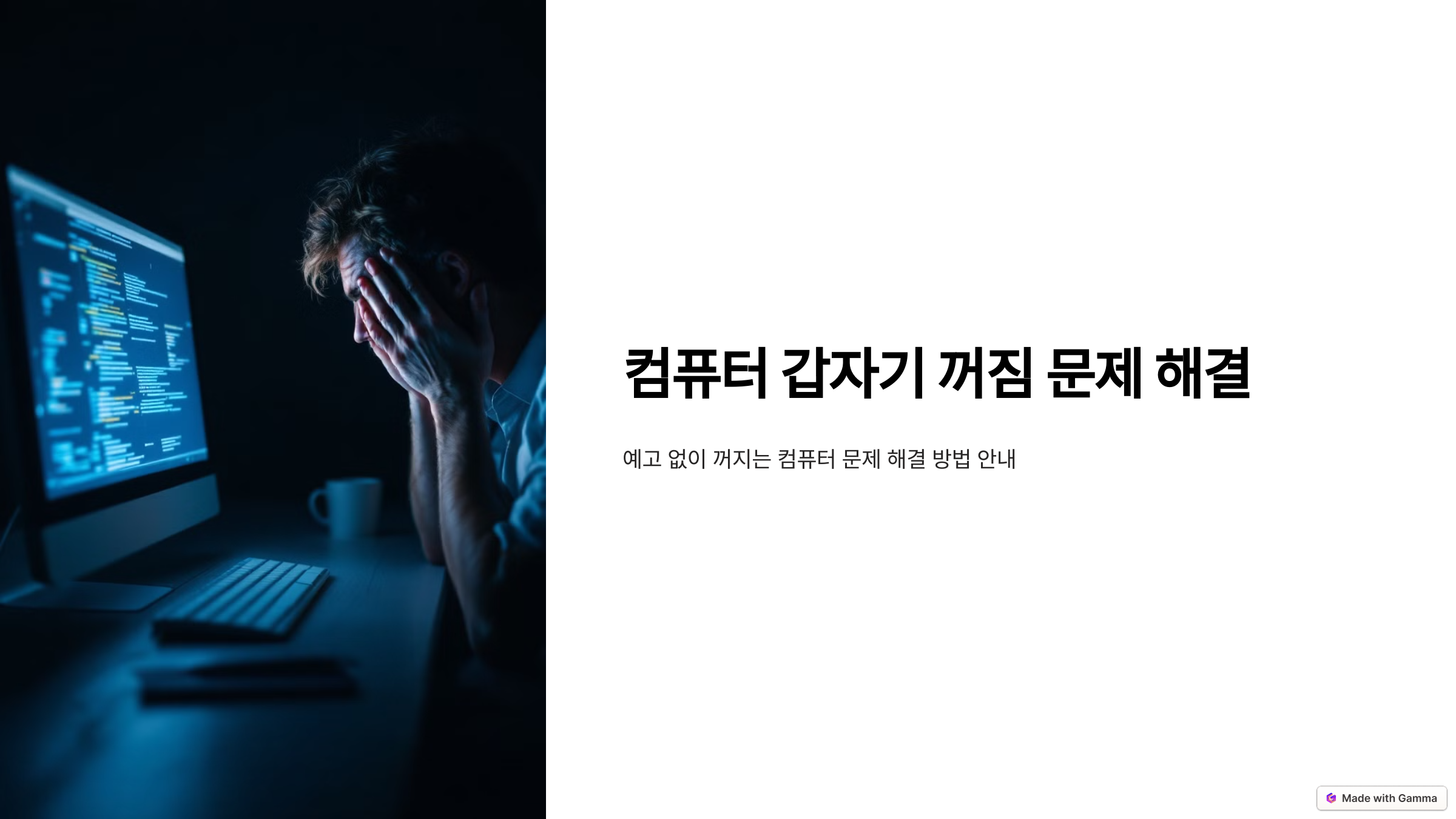 이번 글에서는 컴퓨터가 갑자기 꺼지는 현상의 주요 원인과 해결 방법을 자세히 안내해 드리겠습니다.