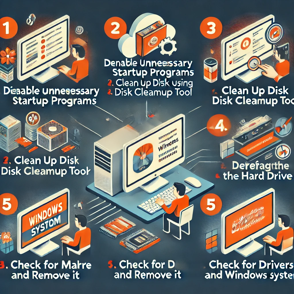 불필요한 시작 프로그램을 비활성화하고, 디스크 정리를 실행하는 것이 가장 효과적입니다.